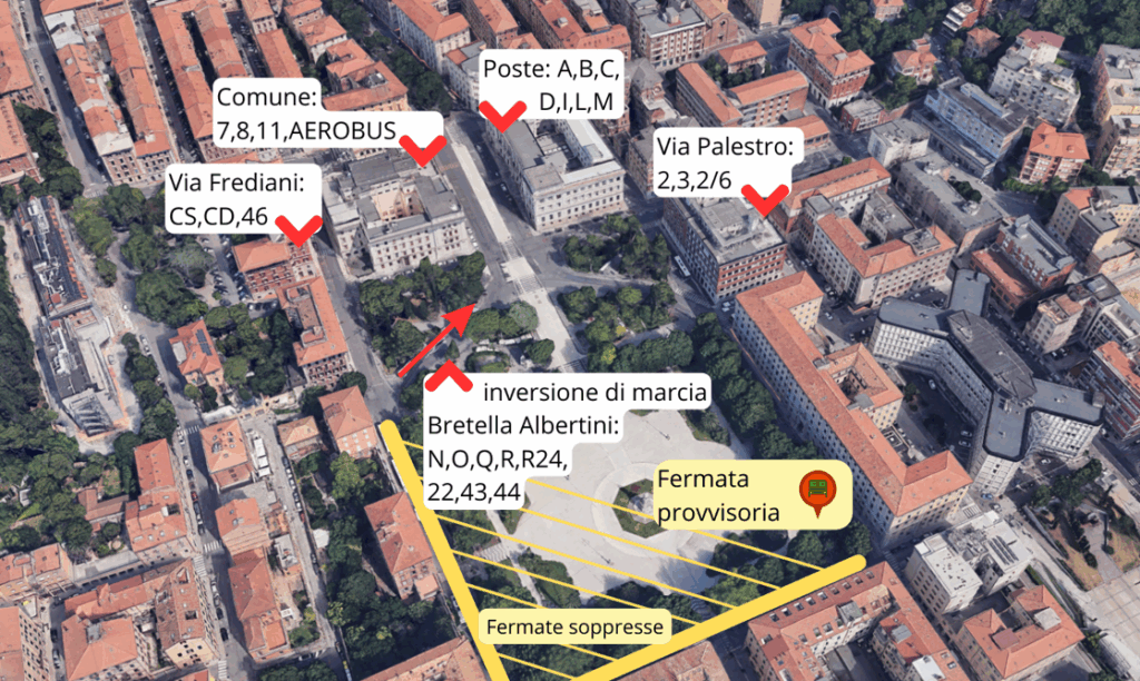 – Deviazioni temporanee per le linee che transitano in prossimità di Piazza Cavour.